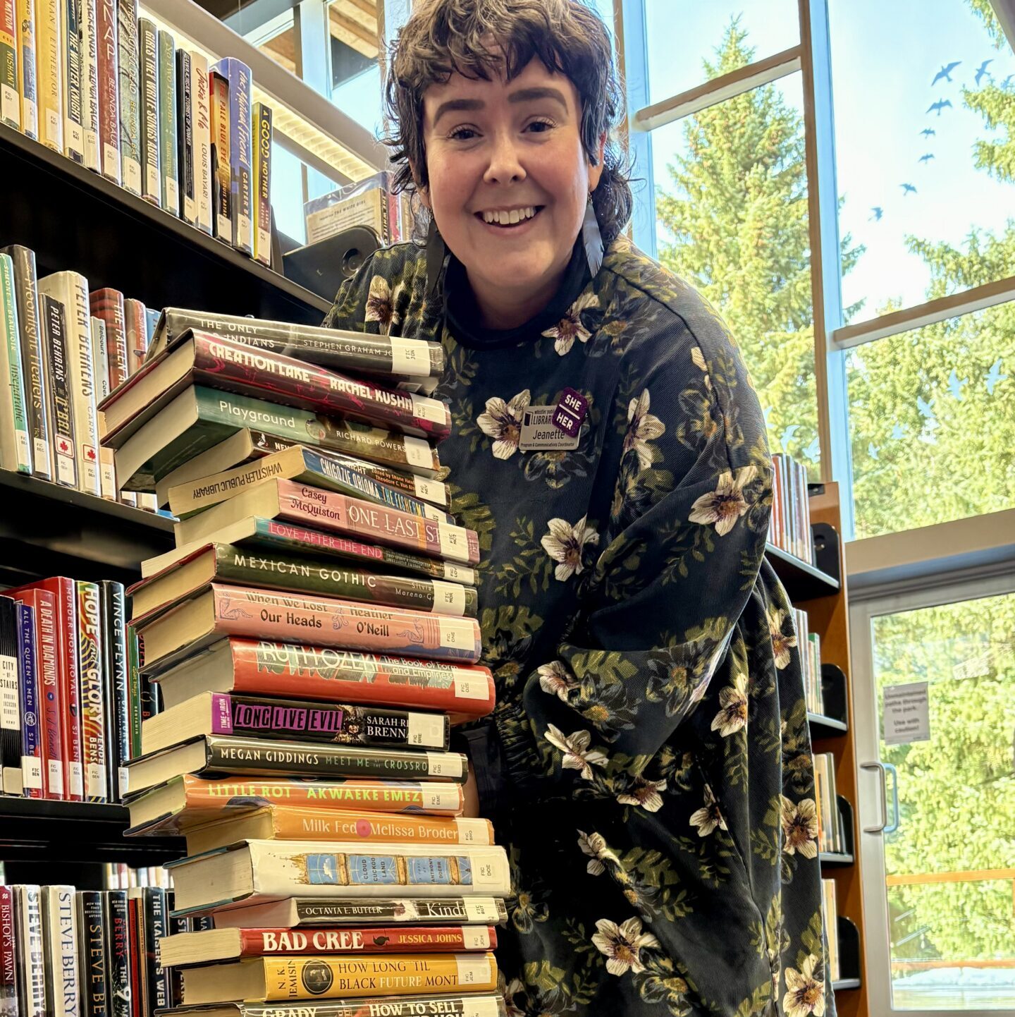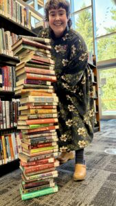 (Visit the library in-person to see the display of 40 book recommendations from Jeanette pictured here.)