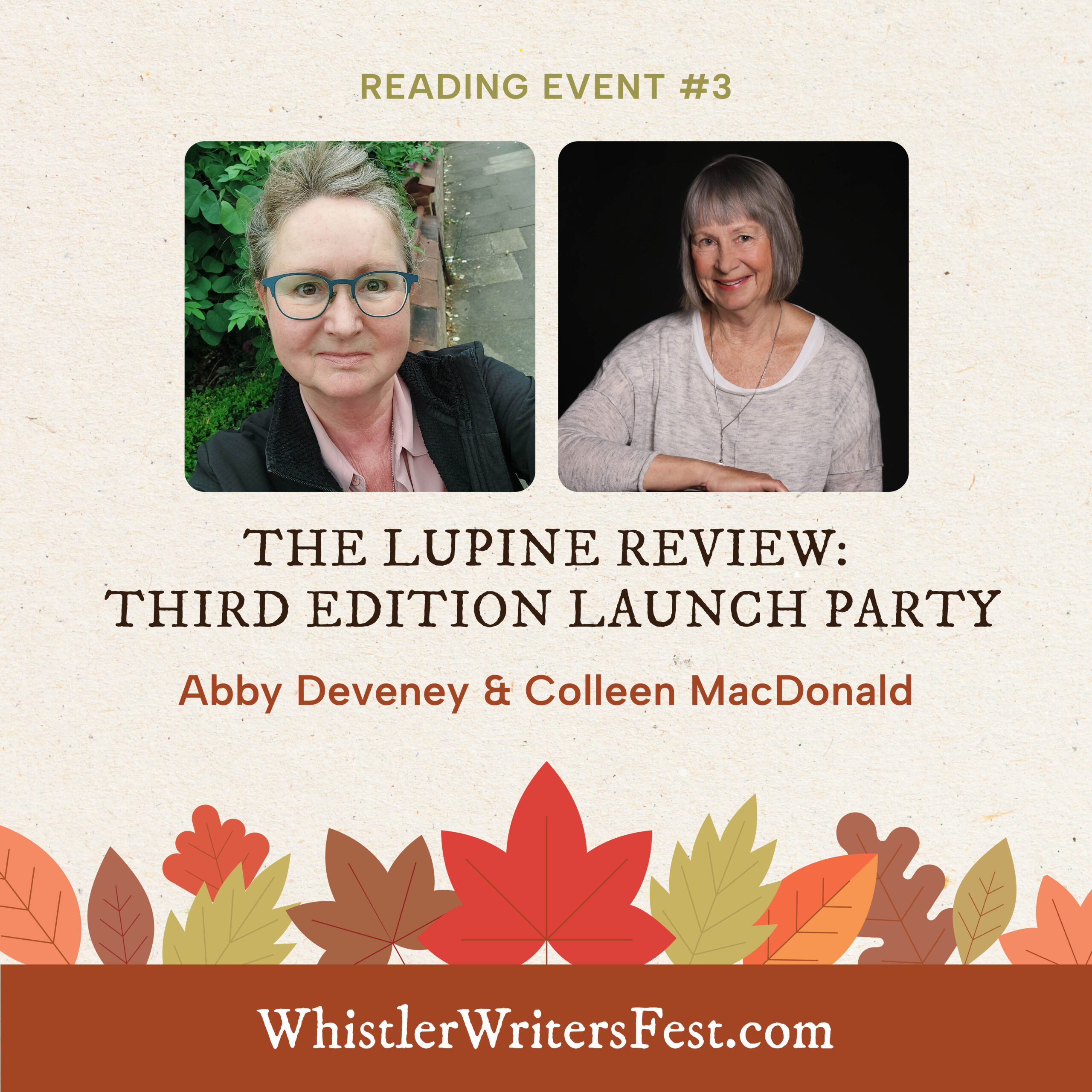 This session is free to attend, and registration is encouraged! Click here to get your free ticket – click on the orange “Get Tickets” button and scroll down to Reading 3: Lupine Review Launch Party! This event is presented in partnership with the Whistler Writers Festival.